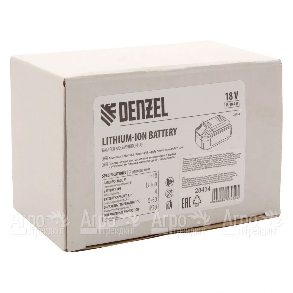 Характеристики товара: Батарея аккумуляторная IB-18-4.0 для аккумуляторной техники Denzel