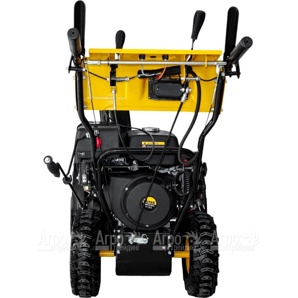 Для легкого удаления плотного слежавшегося снега применяется металлический зубчатый шнек. Еще одной важной особенностью агрегата является использование электростартера, способствующего быстрому запуску двигателя. Для комфортной работы пользователя в сложных условиях в устройстве предусмотрен подогрев рукояток и дополнительное освещение. Безупречные сцепные свойства достигаются благодаря наличию агрессивного протекторного покрытия.