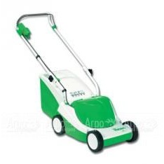 Электрическая косилка средних размеров с разгрузкой сзади и травосборником, с хорошими качествами по сбору травы, для небольших газонов.