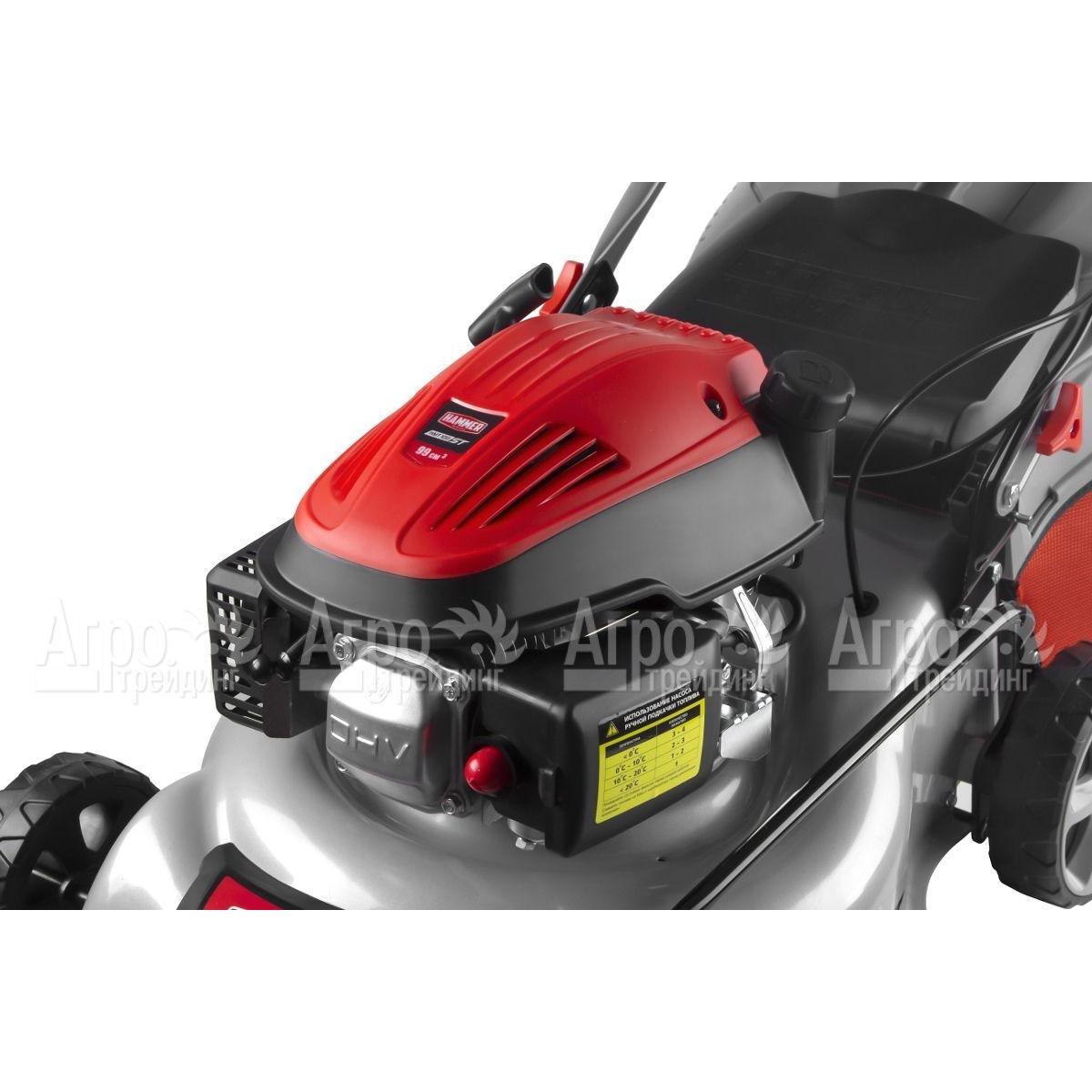 На фотографии Газонокосилка бензиновая Hammer KMT100ST: