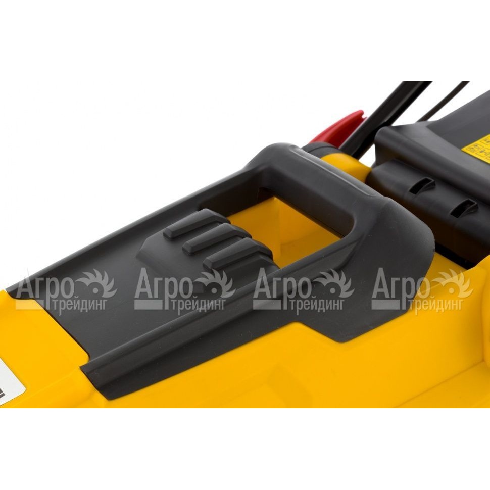 Косилка Denzel укомплектована надёжным электрическим двигателем, защищённым от короткого замыкания и перегрузок. Привод машины ременный. В качестве режущего инструмента выбран роторный нож, изготовленный из закалённой стали. Высоту кошения травы можно регулировать в нескольких вариантах изменением положения центрального рычага. Растительная срезка собирается во вместительный травосборник, который очень просто снять и установить на место. Все элементы управления агрегатом сосредоточены на эргономичной рукоятке. Пластиковый корпус предохраняет внутреннее оборудование машины от механических повреждений и загрязнения. Широкие колёса обеспечивают устойчивость садовой техники и не оставляют следов на газоне.