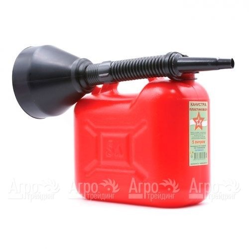 На фотографии Канистра пластиковая Звезда 5 л со сборной воронкой: