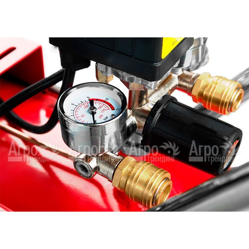 Характеристики товара: Компрессор воздушный Энергомаш ВК-93104Подробное описание товараКомпрессор воздушный Энергомаш ВК-93104 (российский бренд) применяется во всех отраслях – от бытового использования до медицины. Задача этого агрегата от Энергомаша — накопления сжатого воздуха и дальнейшее его использование. Основные сферы применения – ремонты, покраска, продувочные работы, заполнение воздухом шин авто. Давление в баке и на выходе контролируют 2 манометра. Компрессор воздушный Энергомаш ВК-93104 от производителя Энергомаш оснащен реле давления, имеет предохраняющий клапан на ресивере и индикатор уровня масла. Плавный выход воздуха регулирует редуктор. Слив воды (конденсата, который образуется в ходе работы этого агрегата), происходит с помощью дренажного клапана снизу бака, что просто и удобно. Поскольку весит это устройство 58 кг, для удобства транспортировки оно оснащено колесами и пластиковым кожухом.