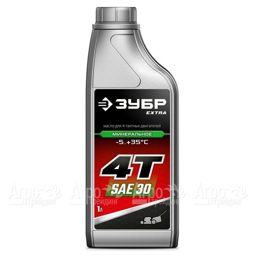 На фотографии Масло минеральное Зубр Extra 4Т-SAE 30 1 л для 4-х тактных двигателей:
