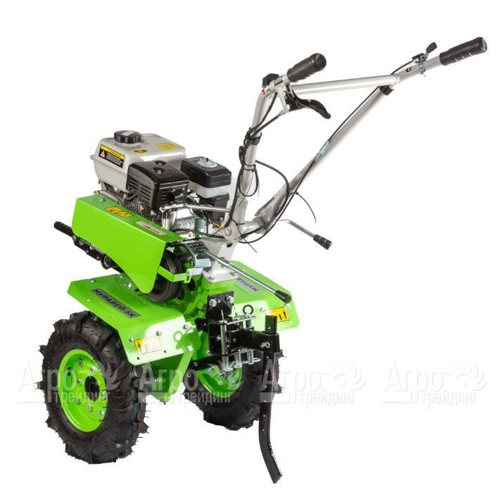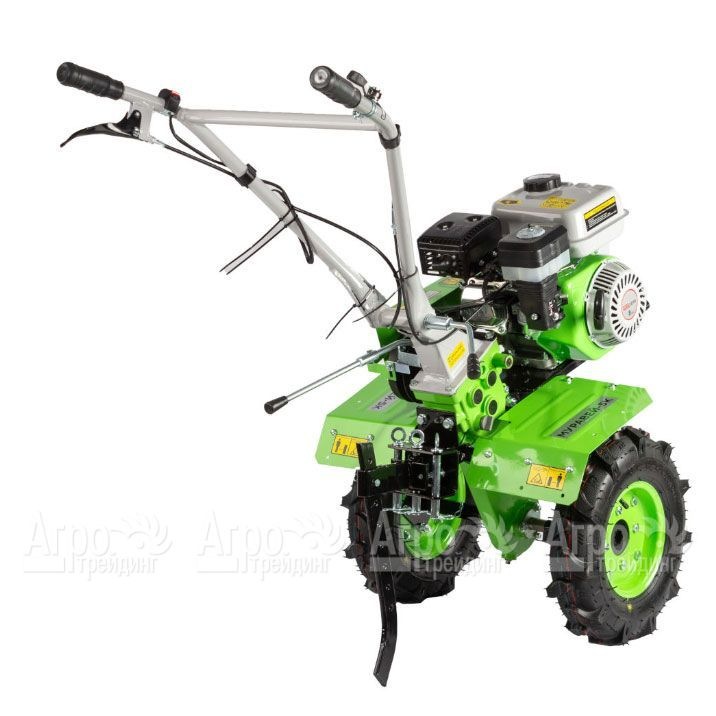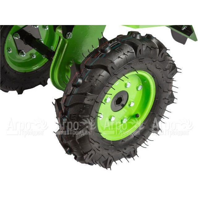 • Высокий клиренс и качественные шины обеспечивают хорошую проходимость на различных типах почвы и улучшают устойчивость мотоблока.