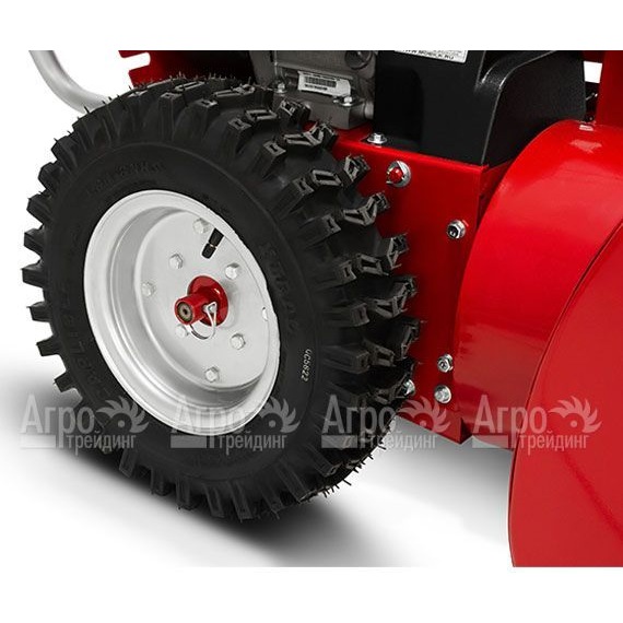Все узлы снегоуборочной машины изготовлены из металла. В целом применение пластика в конструкции сведено к абсолютному минимуму. Колеса большие, обеспечивающие хорошую проходимость. Двигатель мощный, рассчитанный на длительную непрерывную работу. Здесь также установлен уникальный редуктор, в котором не используется цепь, что повышает надежность агрегата. Сама система сбора снега рассчитана на максимально дальний его выброс.