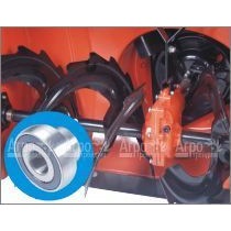 Электростартер и аккумулятор обеспечивающие быстрый запуск при низкой температуре, рабочие рукоятки с электроподогревом, удобная рабочая панель с рычагами управления, наличие галогеновой фары для работы при пониженной видимости - преимущества для комфортной работы пользователя. Специальные курки позволяют осуществлять разблокировку гусениц, что является способом разворота снегоуборщика в неудобных местах, исключая перетаскивание всей массы агрегата. Маневренность снегоуборщика обеспечивается выбором оптимальной скорости для определенного режима работы, из возможных 5 передних и 2 задних передач скоростей.