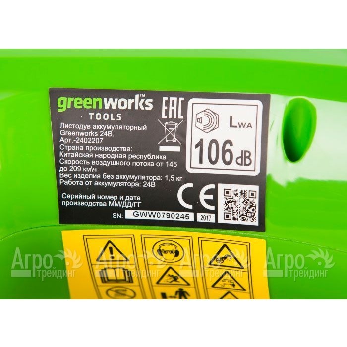 Воздуходувка аккумуляторная GreenWorks G24AB 2 Ач
